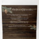 Rustic Watercolor Woodland Boda todo en una invitación triple que viene con tarjetas de respuesta RSVP, Detalles e información y una foto de la pareja. Ramas de pino, pinecones, rodajas de troncos, plumas y pájaros sobre un oscuro fondo rústico de madera. Perfecto para un boda al aire libre, granero, bosque, campo o naturaleza. Necesita ayuda con el diseño, sólo envíeme un correo electrónico a tkatz@me.com