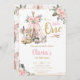 Personalice esta moda boho la invitación de primer cumpleaños de los animales de bosque tribales con su propia redacción fácil y rápidamente, simplemente pulse el botón personalizar it para reorganizar y formatear el estilo y la ubicación del texto. Con adorables ciervos, búhos, mapaches y un bonito de flores adornado con un té. ¡Artículos coincidentes disponibles en la tienda! (c) El estudio Happy Cat Studio.