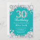 trigésimo Invitación del cumpleaños. Antecedentes verde azulados de la aguamarina de la turquesa del diamante diamante de imitación del trullo y de la plata. El golpe elegante del cumpleaños invita. Blanco y negro. Cumpleaños adulto. Cumpleaños de las mujeres. Cumpleaños de los hombres. Para el arreglo para requisitos particulares adicional, haga clic por favor el "personalizar él" botón y utilice nuestra herramienta de diseño para modificar esta plantilla.