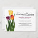Una elegante invitación para el funeral con un trío de hermosos tulipanes en rojo, amarillo y morado y una plantilla de "In Loving Memory" que se puede personalizar fácilmente. Se puede comprar una nota de agradecimiento concordante después del funeral para agradecer a la familia y amigos por su apoyo.
