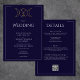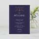 Fijar el tono para una celebración atemporal y dramática con esta singular invitación a la boda bilateral de la gauche, perfecta para el romance oscuro y los bodas de inspiración pagana. Con un fondo azul oscuro nocturno, fuentes góticas del viejo mundo y un emblema impresionante de la diosa triple dorada, esta invitación evoca una elegancia simple. La parte posterior incluye detalles esenciales del boda como RSVP, información de recepción y el sitio web de su boda. Este diseño le aporta un carácter audaz y un encanto alquimista a su gran día, y es una opción económica para invitaciones que requieren tarjetas de gabinete. Creado por Simply Farmhouse Press.