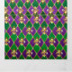 joyas, fondo del Mardi Gras de rhombus violeta y verde, lirios dorados decorados.