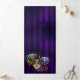 Invitación Tríptica Araña Steampunk sobre fondo púrpura