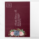 Invitación Tríptica Azul marino y Boda de borgoña con flores rosadas d