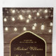 Sorprende a tus invitados con esta elegante invitación a la boda, que incluye vintage jarras de albañil y hermosos girasoles sobre un rústico fondo de madera de granero con bombillas colgantes. Simplemente agregue los detalles de su evento en esta plantilla fácil de usar y adorne esta tarjeta con sus fotos favoritas para convertirla en una invitación única.