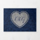 Invitación Tríptica Blue Damask Silver Heart All in One Boda