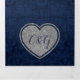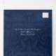 Elegante azul sobre damasco azul todo en una invitación a la boda, tarjeta de recepción y tarjeta postal RSVP, con el corazón purpurina de plata falso decorativo con monogramas. Personalice todos los campos de texto con su información.