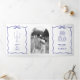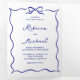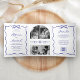 Invitación Tríptica Blue Hand Drawn Bow QR Code Photo Wedding
