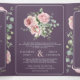 Invitación Tríptica Blush Pink Floral Eucalyptus Dusty Purple Wedding