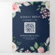 Invitación Tríptica Boda azul de la Marina del código QR floral rosa d