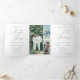 Celebra tu historia de amor con nuestra invitación Tri-Fold Boda bilingüe castellano de Nuestra Boda. Con un elegante diseño de caligrafía y una intemporal paleta de colores en blanco y negro, esta disposición triple ofrece un amplio espacio para compartir los detalles de sus bodas tanto en inglés como en español. El diseño incluye una plantilla de 3 fotos, que le permite añadir un toque personal con sus imágenes favoritas. Perfecto para celebraciones multiculturales, esta invitación de personalizable completa mezcla sofisticación y practicidad, creando un hermoso toque para su día especial.