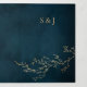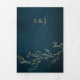 Invitación Tríptica Boda Botánica Elegante Navy Blue y Gold