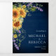 Sorprenda a sus huéspedes con esta elegante invitación de boda, que incluye hermosos girasoles y un ramo de lavanda. Simplemente agregue los detalles de su evento en esta plantilla fácil de usar y adorne esta tarjeta con sus fotos favoritas para convertirla en una invitación única.