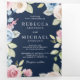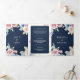 Invitación Tríptica Boda de código QR azul de la Marina floral de prim