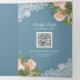 Invitación Tríptica Boda de código QR azul turbio de encaje floral ros