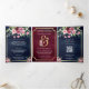 Invitación Tríptica Boda de código QR de la Marina Floral Pink Marsala