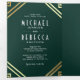 Invitación Tríptica Boda de código QR de oro Esmeralda de arte geométr