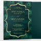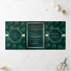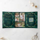 Invitación Tríptica Boda de código QR de plumas de pavo real Verde azu