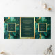 Invitación Tríptica Boda de código QR de tinta de aceite verde esmeral