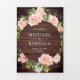 Invitación Tríptica Boda de código QR floral rosa de Rubor Rústico Woo