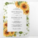 Sorprenda a sus huéspedes con esta elegante invitación de boda, que incluye hermosos girasoles y tipografía moderna con tarjeta RSVP en línea. Simplemente agregue los detalles de su evento en esta plantilla fácil de usar y adorne esta tarjeta con sus fotos favoritas para convertirla en una invitación única.
