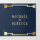 Invitación Tríptica Boda de código QR Square Art Deco Frame Navy Gold