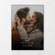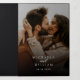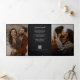 Esta elegante invitación tríplia de boda negro incluye dos fotos y un diseño atemporal y sofisticado con fuentes serif y script modernas que se complementan maravillosamente entre sí. Los cuatro paneles de texto muestran tipografía elegante y espacio para códigos QR con enlaces a su sitio web boda, el enlace de lugar o alojamiento, y un enlace para su registro de regalos o fondo de luna de miel, o cualquier enlace de su elección. En el interior, el elegante fondo negro resalta detalles esenciales de los bodas, incluyendo información sobre la ceremonia y la recepción, sugerencias de alojamiento, opciones de RSVP y código de vestimenta, todo ello organizado en un diseño organizado y fácil de leer. Perfecto para parejas que buscan una invitación contemporánea pero refinada que combina perfectamente la practicidad con una moda, una estética mínima.