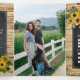 Muestra todos los detalles de tu boda con esta rústica invitación de tres veces en una boda con un fondo de madera afligida, un pizarrón, girasoles otoñales, follaje y rosas de vino tinto profundo, lo que lo hace perfecto para bodas de campo, granero y otoño. Incluye una foto de la pareja feliz, y la invitación a la boda. Los huéspedes pueden cortar fácilmente la postal RSVP y enviarla por correo. Edite fácilmente toda la información con los detalles de su boda utilizando la plantilla proporcionada.