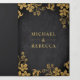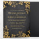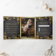 Invitación Tríptica Boda de Hojas Florales de Pizarra y Hoja de Oro