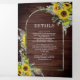 Aprovecha tu estancia con esta elegante invitación de bodas que incluye hermosos girasoles y hojas de eucalipto con tipografía moderna. Simplemente agregue los detalles de su evento en esta plantilla fácil de usar y adorne esta tarjeta con sus fotos favoritas para convertirla en una invitación única.