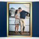 Invitación Tríptica Boda de luces de oro náuticas de madera azul de la