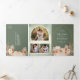 Invitación Tríptica Boda de otoño en verde salvia con flores de calaba