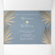 Sencillo, moderno, tropical, verano polvoriento azul 3 en una boda de playa triple invitación, con hojas de palma doradas e imagen de la pareja. Añade tu foto, detalles del boda y rsvp.