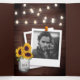 Sorprenda a sus huéspedes con esta rústica invitación en una boda con hermosos encajes blancos y girasoles en frasco de albañil sobre un fondo de madera de granero vintage con una tarjeta RSVP desmontable. Simplemente agregue los detalles de su evento en esta plantilla fácil de usar y adorne esta tarjeta con su foto favorita para convertirla en una invitación única.
