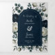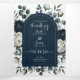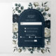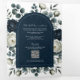 Invitación Tríptica Boda de vegetación floral moderna, azul oscuro y b