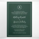 Simple plantilla Invitación todo en una boda con tarjeta rsvp y tarjeta adjunta, lo que hace que esta suite de invitaciones sea cómoda y económica. La invitación a la boda incluye su monograma en un círculo en la parte superior y los detalles de su boda rodeados por un borde delgado junto con sus nombres están en una elegante letra manuscrita. El reverso muestra tu foto favorita. Todos los elementos de diseño están en verde forestal y pueden cambiarse en la herramienta de edición de diseño. La tarjeta postal RSVP tiene tu dirección postal en la parte trasera y tus invitados simplemente te cortan y te devuelven el correo. NOTA: Se requiere franqueo de primera clase para la postal RSVP. Los sellos postales no serán suficientes debido al tamaño. El diseño clásico y tradicional hace que este diseño sea perfecto para un boda formal.