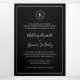 Simple plantilla Invitación todo en una boda con tarjeta rsvp y tarjeta adjunta, lo que hace que esta suite de invitaciones sea cómoda y económica. La invitación a la boda incluye su monograma en un círculo en la parte superior y los detalles de su boda rodeados por un borde delgado junto con sus nombres están en una elegante letra manuscrita. El reverso muestra tu foto favorita. Todos los elementos de diseño están en blanco y negro y pueden cambiarse en la herramienta de edición de diseño. La tarjeta postal RSVP tiene tu dirección postal en la parte trasera y tus invitados simplemente te cortan y te devuelven el correo. NOTA: Se requiere franqueo de primera clase para la postal RSVP. Los sellos postales no serán suficientes debido al tamaño. El diseño clásico y tradicional hace que este diseño sea perfecto para un boda formal.