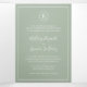 Simple plantilla Invitación todo en una boda con tarjeta rsvp y tarjeta adjunta, lo que hace que esta suite de invitaciones sea cómoda y económica. La invitación a la boda incluye su monograma en un círculo en la parte superior y los detalles de su boda rodeados por un borde delgado junto con sus nombres están en una elegante letra manuscrita. El reverso muestra tu foto favorita. Todos los elementos de diseño están en color verde sabio y pueden cambiarse en la herramienta de edición de diseño. La tarjeta postal RSVP tiene tu dirección postal en la parte trasera y tus invitados simplemente te cortan y te devuelven el correo. NOTA: Se requiere franqueo de primera clase para la postal RSVP. Los sellos postales no serán suficientes debido al tamaño. El diseño clásico y tradicional hace que este diseño sea perfecto para un boda formal.