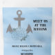 Esta bonita invitación de boda tríptica viene en una pieza con toda la información en una página. Solo corte la tarjeta de respuesta y envíela de vuelta a la novia. Un fondo cristalino azul acuático y un elemento de marina te invitan a asistir a la ceremonia de boda en un entorno marino.