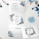 Invitación Tríptica Boda floral azul con RSVP todo en uno