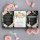 Invitación Tríptica Boda floral negra de magnolia blanca con rubor ros