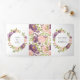 Invitación Tríptica Boda floral rosada de plumas ruidosas moradas de R