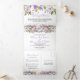 Invitación Tríptica Boda floral rústica púrpura 3 en 1