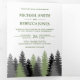 Aprovecha tu estancia con esta elegante invitación a bodas con temática forestal, con hermosos pinos y una tipografía moderna con un fondo blanco. Simplemente agregue los detalles de su evento en esta plantilla fácil de usar y adorne esta tarjeta con sus fotos favoritas para convertirla en una invitación única.