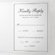 Tradicional y elegante, todo en una plantilla de invitación de boda con tarjeta rsvp y tarjeta adjunta, haciendo que esta suite de invitación sea cómoda y económica. La invitación a la boda tiene su primer monograma y sus nombres en una elegante caligrafía dentro de un delgado borde junto con su foto favorita en la parte posterior. La tarjeta postal RSVP tiene tu dirección postal en la parte trasera y tus invitados simplemente te cortan y te devuelven el correo. NOTA: Se requiere franqueo de primera clase para la postal RSVP. Los sellos postales no serán suficientes debido al tamaño. Este diseño clásico en blanco y negro es perfecto para un boda formal. Las invitaciones "todo en uno" son cómodas y económicas.