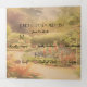 Una hermosa imagen descolorida de un camino de jardín, flores y arcos bajo el texto de esta invitación a la boda. Bonito y ambiente tranquilo al aire libre en tonos rústicos y tierra.