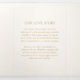 Nuestro papel Signature Matte es uno de los favoritos de nuestros clientes: suave al tacto con una textura suave de cáscara de huevo que realza cualquier diseño. Su resistente gramaje de 18 pt y su tacto natural lo convierten en la opción ideal para eventos atemporales y sofisticados.