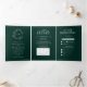Invitación Tríptica Boda Monograma del Escudo Esmeralda Green Leafy