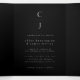 Invitación Tríptica Boda Monograma moderno foto en negro Código QR