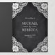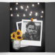 Invitación Tríptica Boda Rústico Black Chalkboard Lace String Lights
